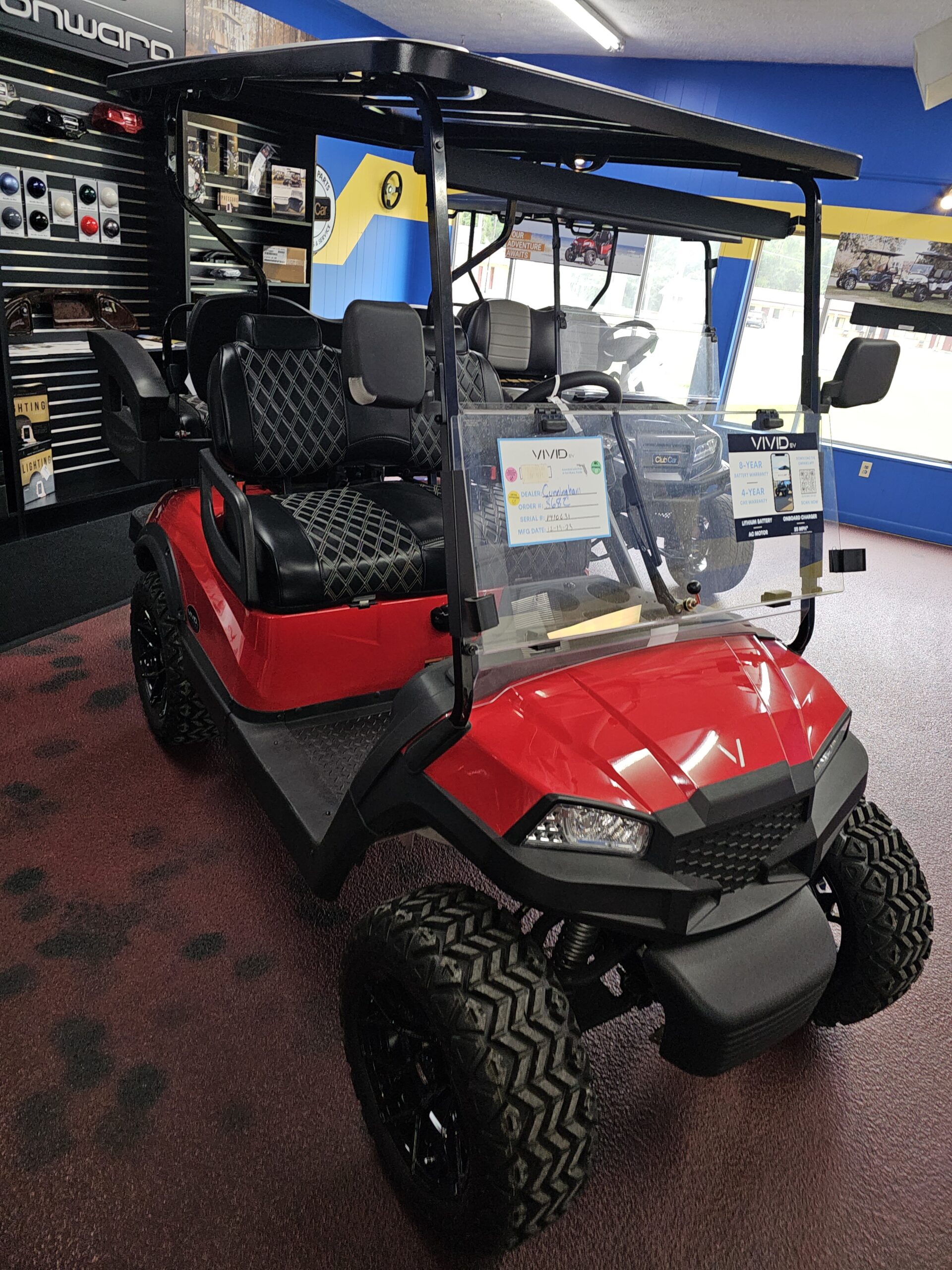2024 Vivid LSV Peak Series – red – With robust engineering and a 25 MPH top speed this street-legal vehicle will definitely turn some heads. This unit comes standard with 4 wheel disc brakes, seat belts, back up camera, custom seats, 23″ custom wheels, Folding rear seat with storage bucket/cooler, Arm rest storage, on board charger and 105AH Lithium battery produced by Eco. With a 17 digit vin number and a title, this unit complies with the federal standards for street legal. Priced to Sell!