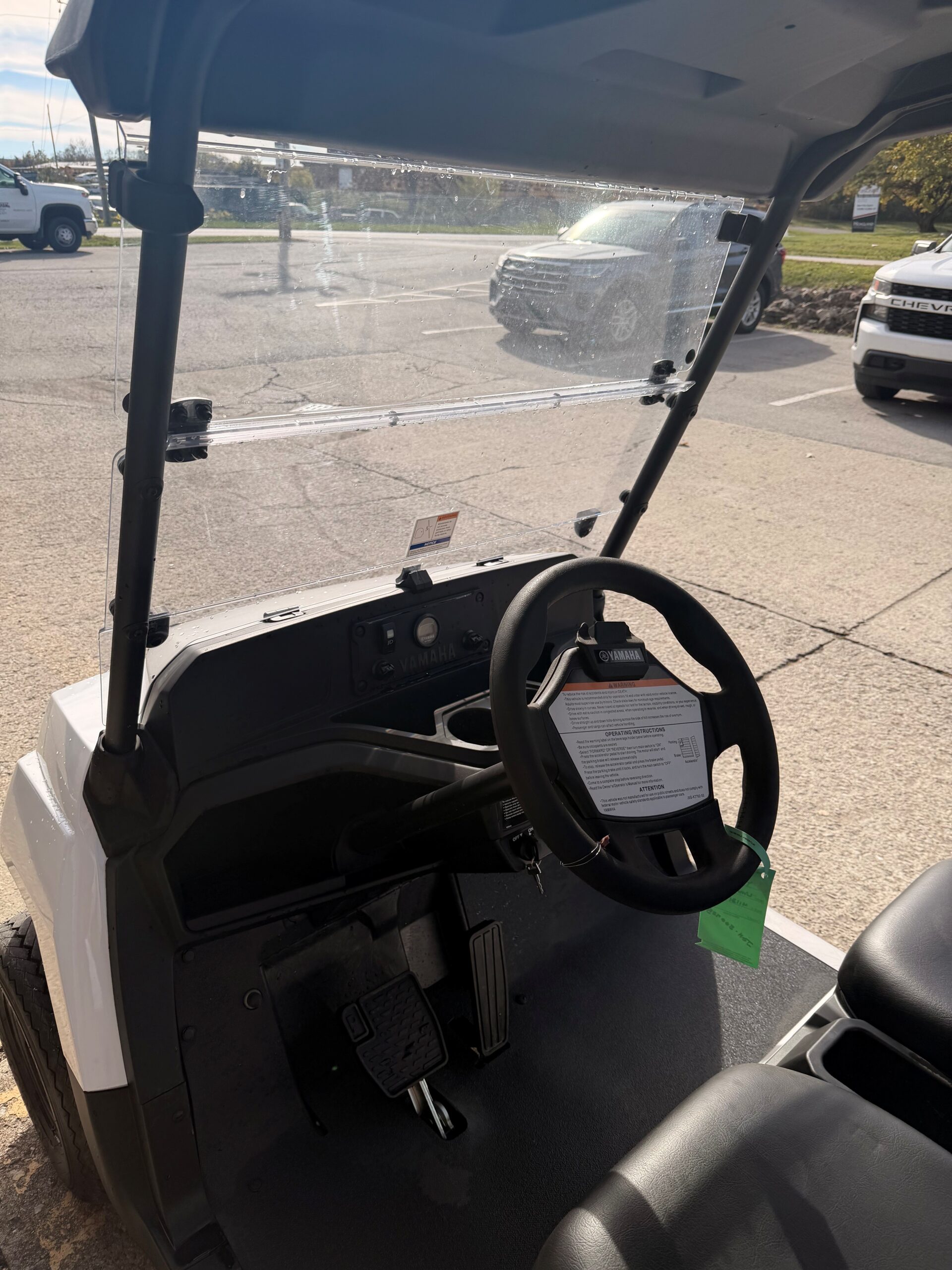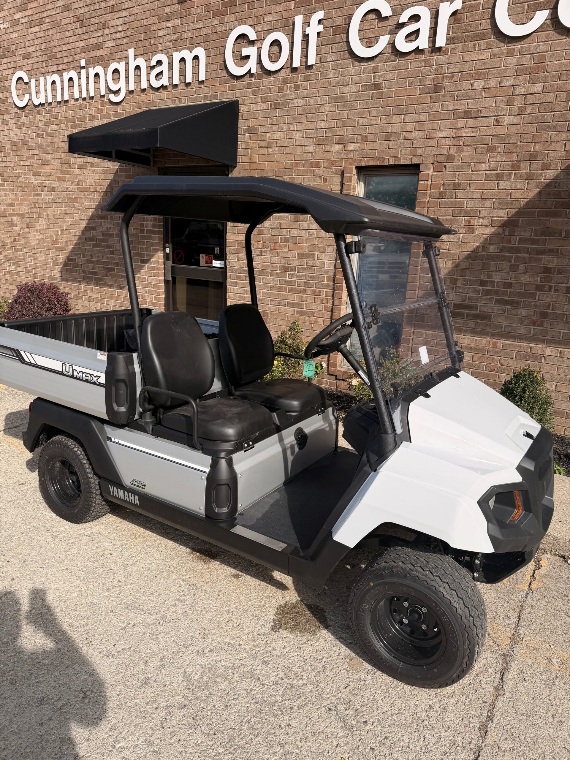 2024 Yamaha Golf-Car UMAX® 2 AC -Glacier White, luxurious bucket seats, under hood storage compartment, and large 20″ tires, you can see the difference when power, performance, versatility, and comfort matter. Check out the dash with dual USBs, dual cupholders and ample storage. Add the manual tilt bed and you have a workhorse.